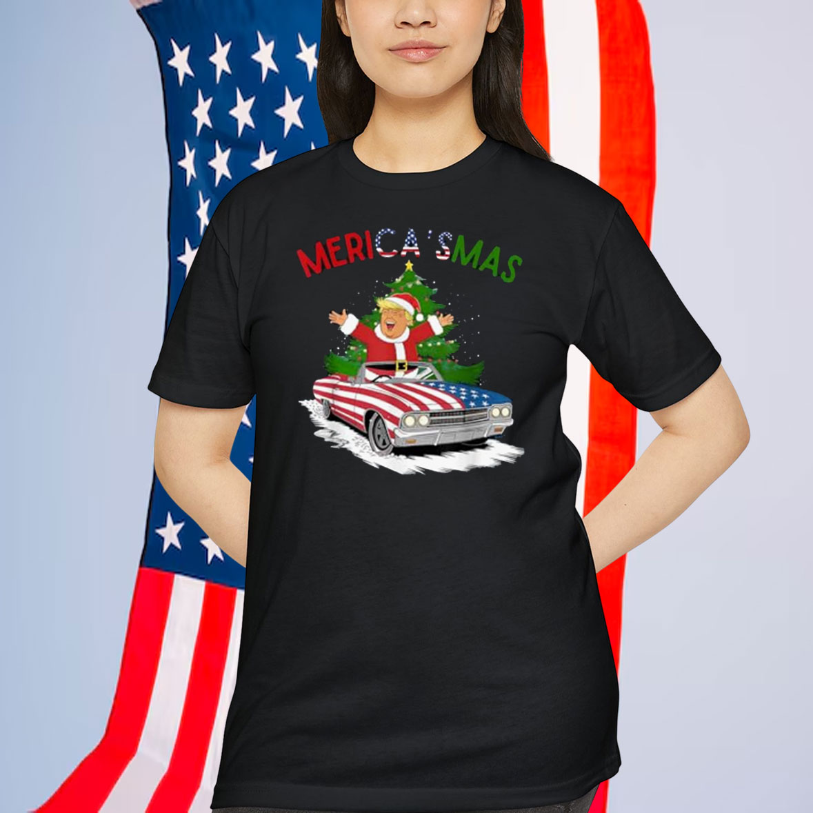 Funny Merry Christmas Trump Merica Xmas Pajamas Santa Shirt