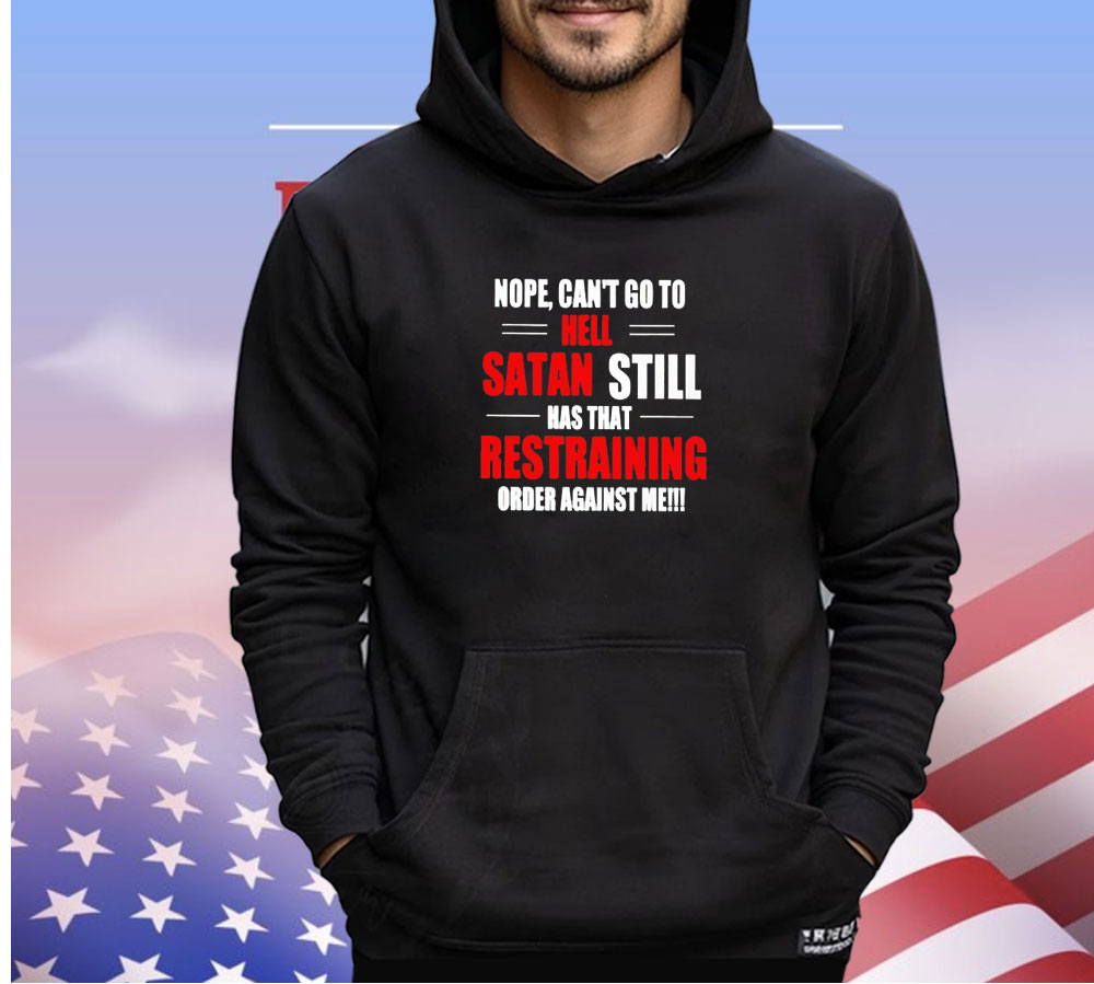 Nope can’t go to hell satan still has that restraining order against me shirt