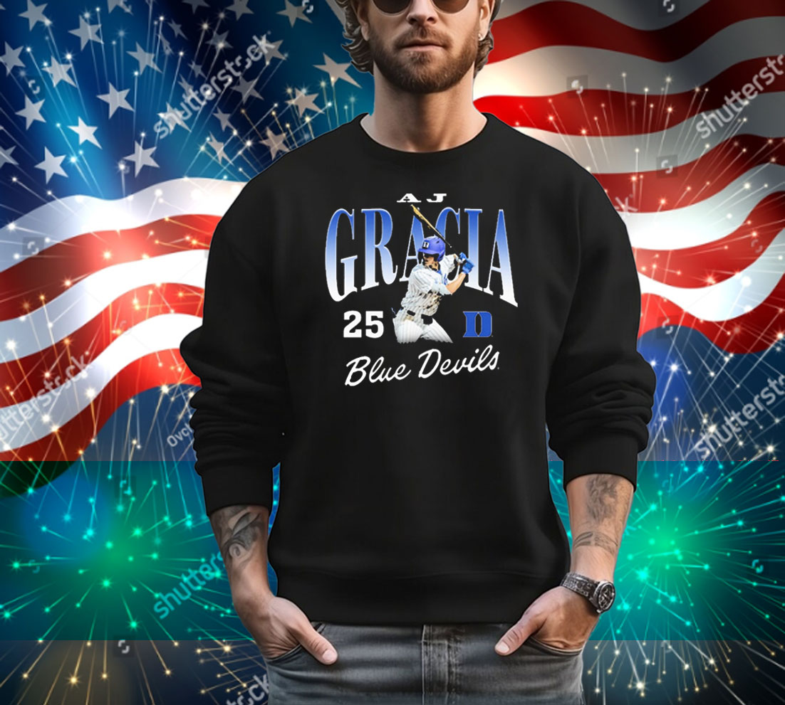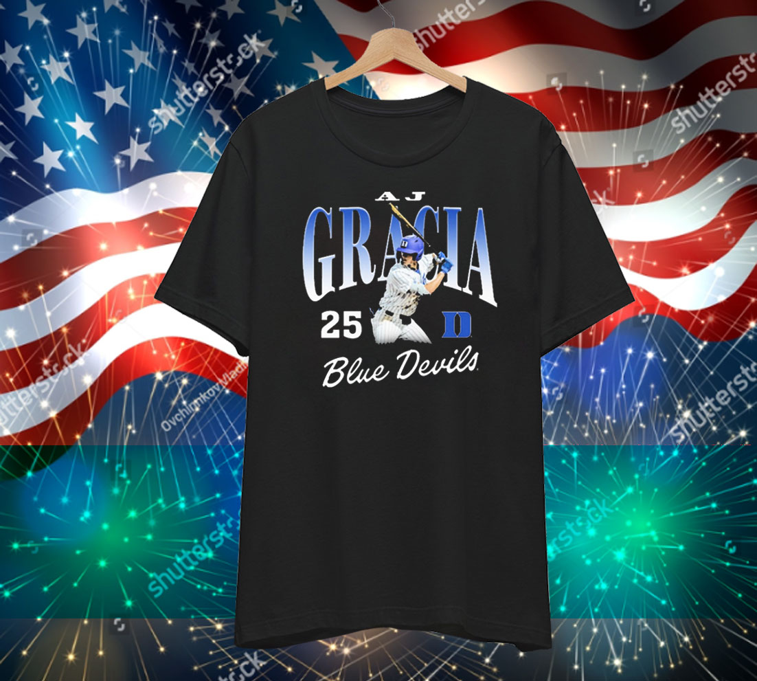 Official AJ Gracia 25 Duke Blue Devils Baseball NCAA Division I Graphic T-Shirt