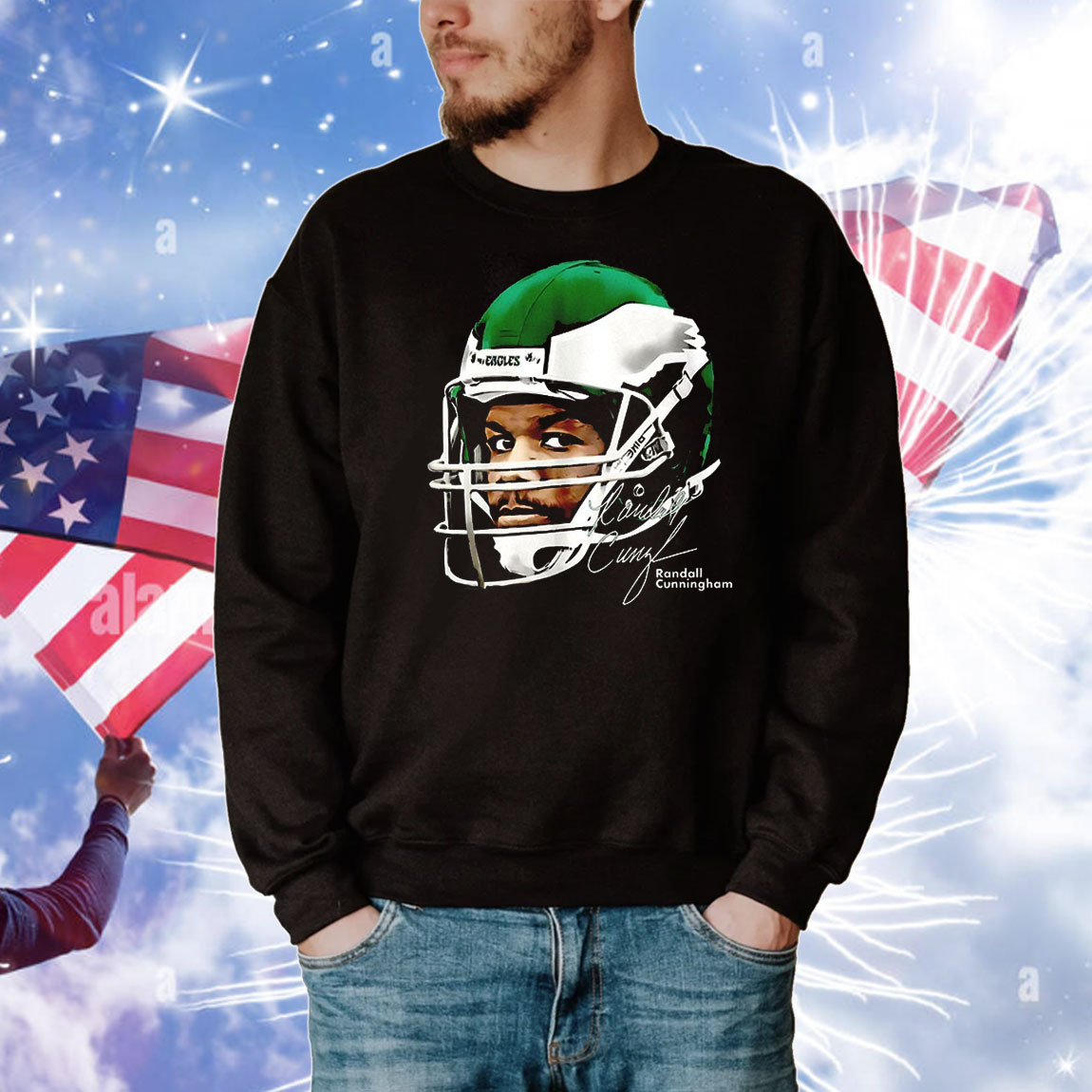 Randall Cunningham Philadelphia Eagles watercolor art big head T-Shirt